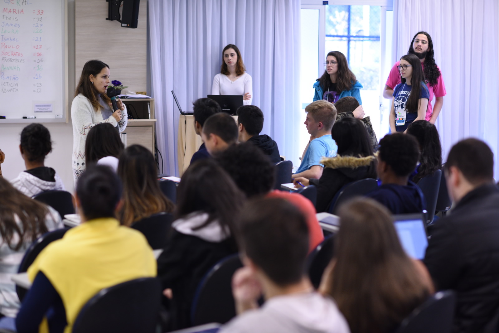 Comissão Provincial apresenta resultados de seu mandato na Assembleia Provincial de JuventudesVindos de várias cidades da Província, 73 jovens envolvidos com espaços de representação participaram da Assembleia Provincial de Juventudes, realizada de 01 a 03/08, no Centro Marista Champagnat, em Curitiba (PR). Na quinta-feira, um dos destaques foi a apresentação de três integrantes da Comissão Provincial que estavam encerrando seu mandato, sobre as principais realizações e os desafios enfrentados de 2016 a 2019. Lyandra Melgarejo Seffrin, Wendeu Corsino e Brenda Moraes responderam perguntas dos participantes e partilharam como foi a experiência pessoal deles, como representantes dos jovens. Esta foi a primeira vez que a Comissão exerceu um mandato de três anos, aprovado na Assembleia anterior. Fala do Ir. Lucas Lopes na Assembleia Provincial de JuventudesNa sequência, Ir. Lucas José Ramos Lopes ministrou uma palestra intitulada “As possibilidades democráticas para trabalhar os conceitos de participação”, como parte da formação proporcionada pelo encontro. Na sexta-feira, a programação incluiu: leitura e aprovação do regimento, momentos de espiritualidade e de reflexão sobre a decisão de se candidatar como representante das Juventudes, apresentação dos candidatos, votação, celebração e anúncio dos eleitos para a nova Comissão Provincial. O sábado foi marcado pelo diálogo com pastoralistas e jovens, pelas reflexões sobre os horizontes que estão por vir, planejamento para os próximos anos e pela Celebração de Envio, para que todos possam continuar a missão em suas cidades e áreas de atuação.