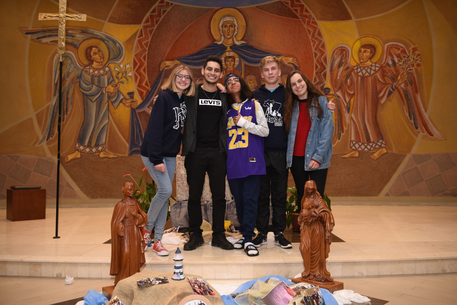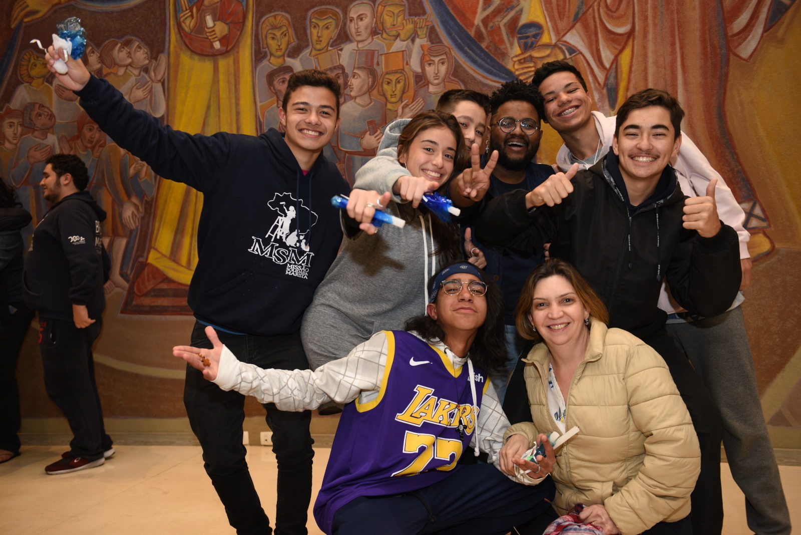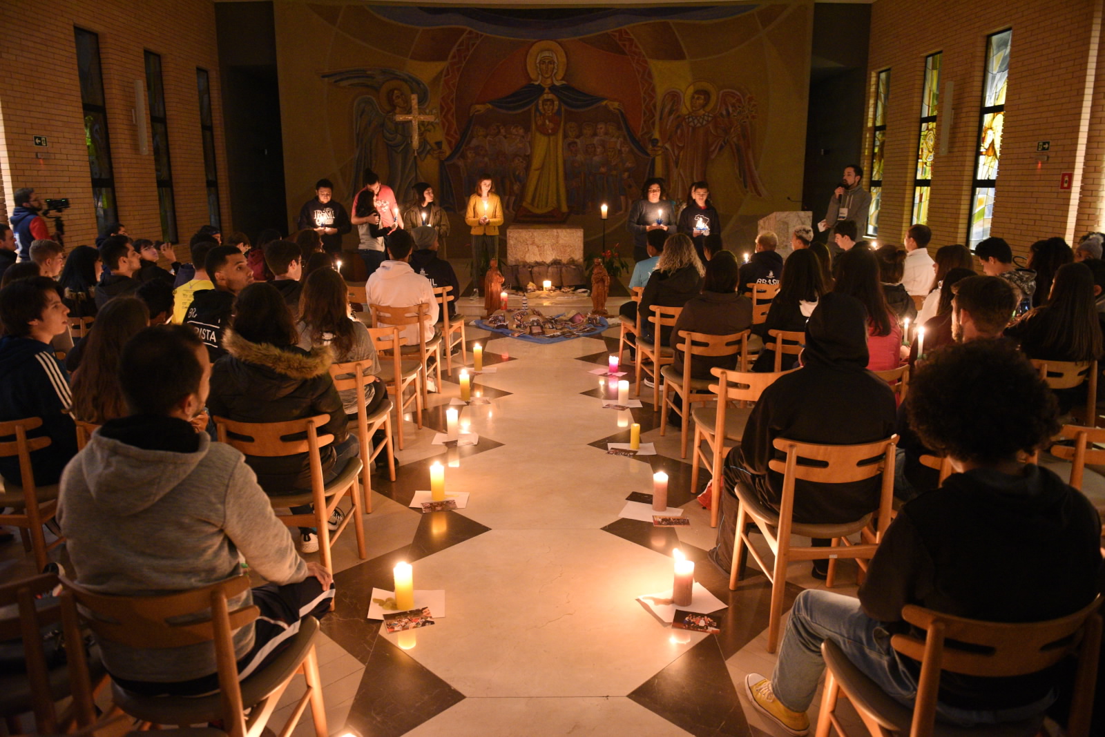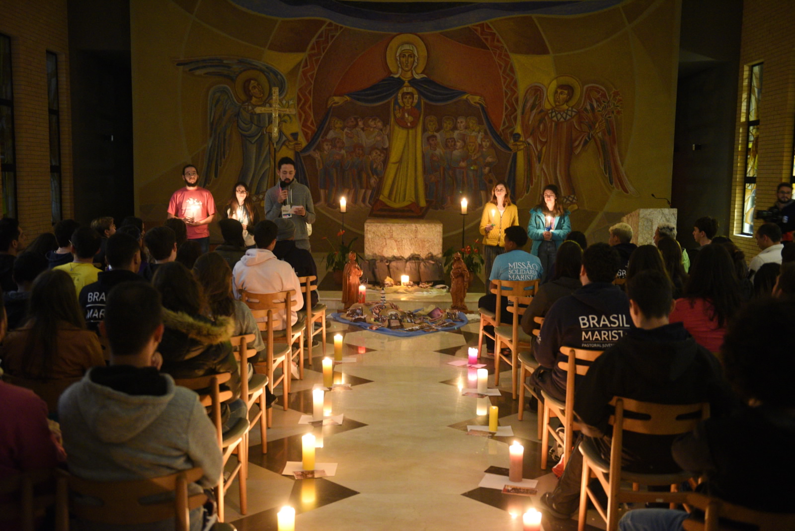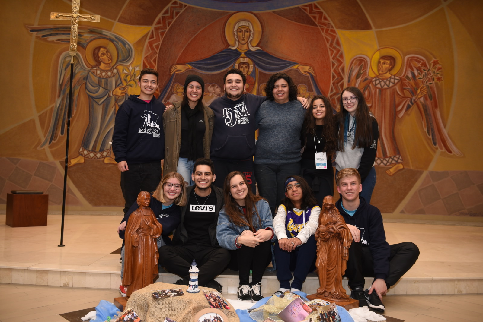 “Os jovens alegres e felizes para o exercício da Comissão Provincial das Juventudes da PMBCS são presentes de Deus e escolhidos de Maria, pois uma feliz coincidência os colocou bem diante do painel da Mãe da Misericórdia, envolvidos, embaixo do manto maternal de Nossa Senhora. Alegremo-nos!