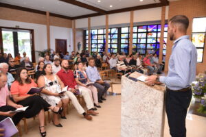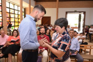Durante a Missa de Ação de Graças que celebrou os Primeiros Votos Religiosos, Ir. Benê Oliveira, Superior Provincial da PMBCS, parabenizou o Ir. Rafael pelo ato de fé, de coragem, de esperança e pelo testemunho dado, especialmente aos jovens, ao abraçar a Profissão Religiosa no Instituto Marista.